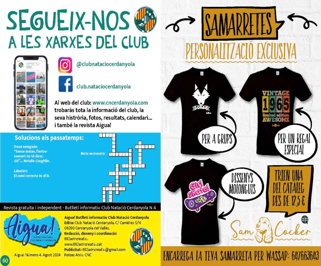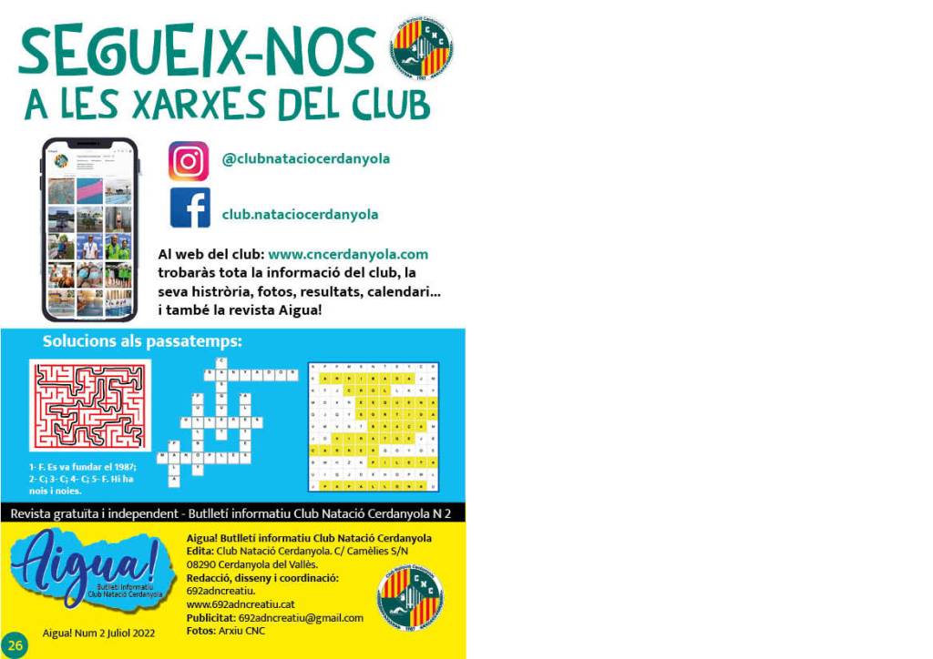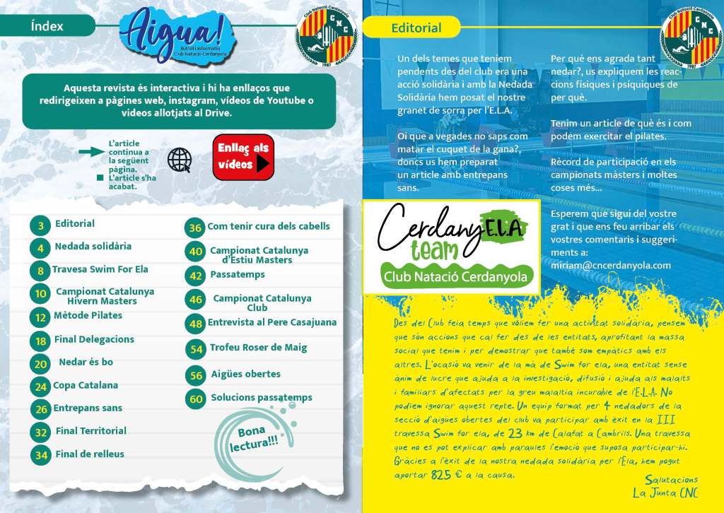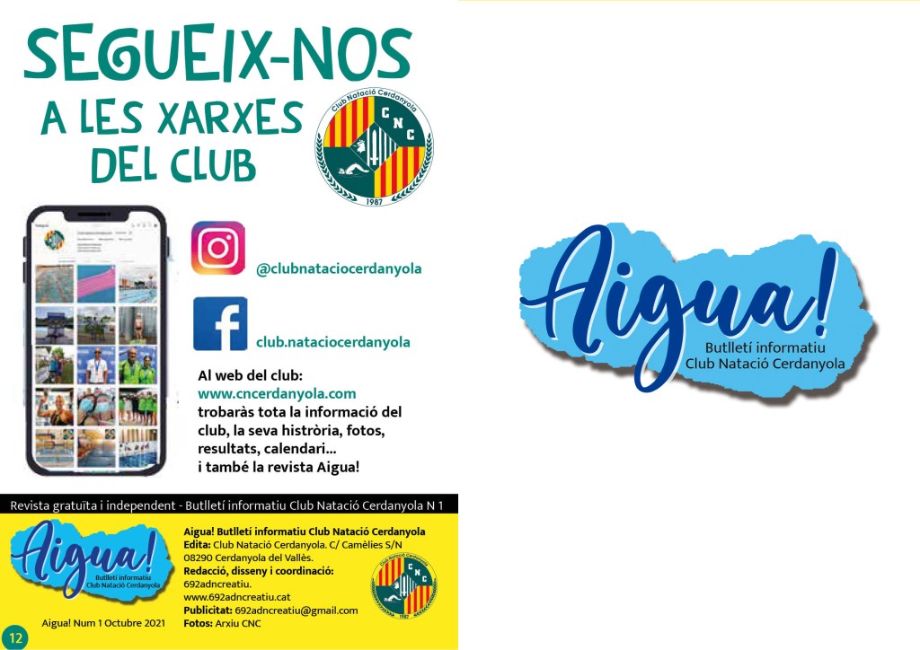 Creació de textos, disseny, maquetació i coordinació de la revista Aigua! Butlletí informatiu del Club Natació Cerdanyola. @clubnataciocerdanyola