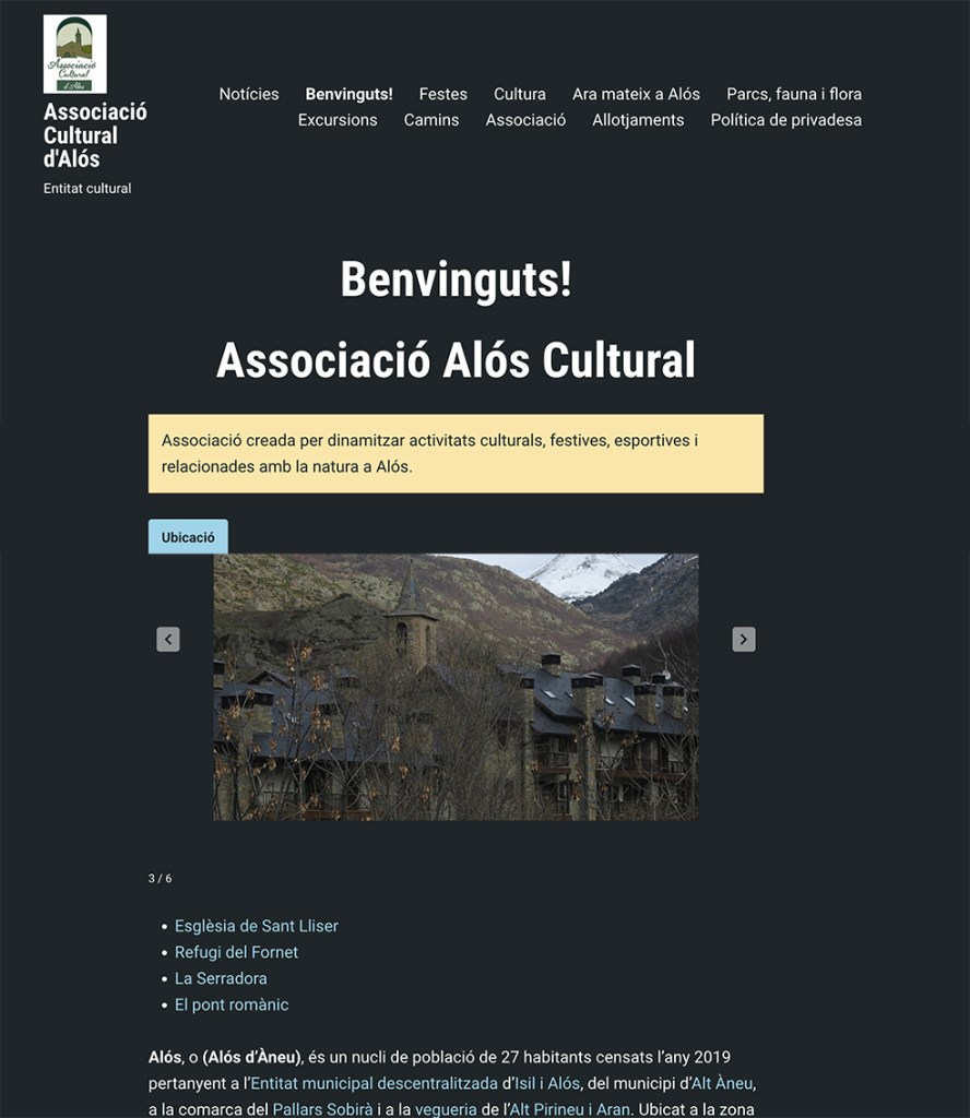 Pàgina web de Alós Cultural. Associació Cultural del poble d’Alós.